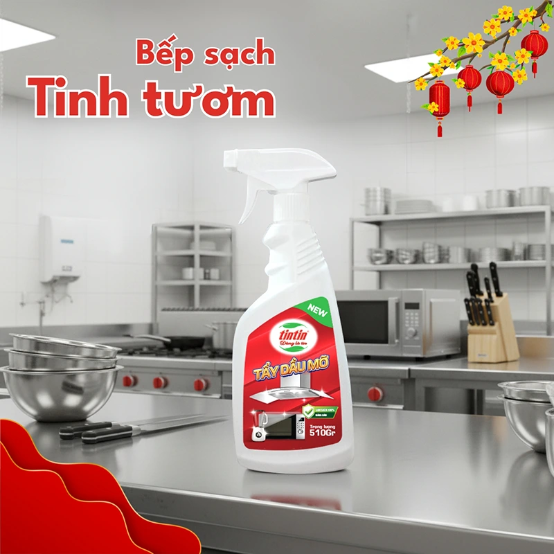 Để tiết kiệm thời gian và công sức, bạn nên lựa chọn Tẩy dầu mỡ TinTin – giải pháp tối ưu cho gian bếp sạch bóng.